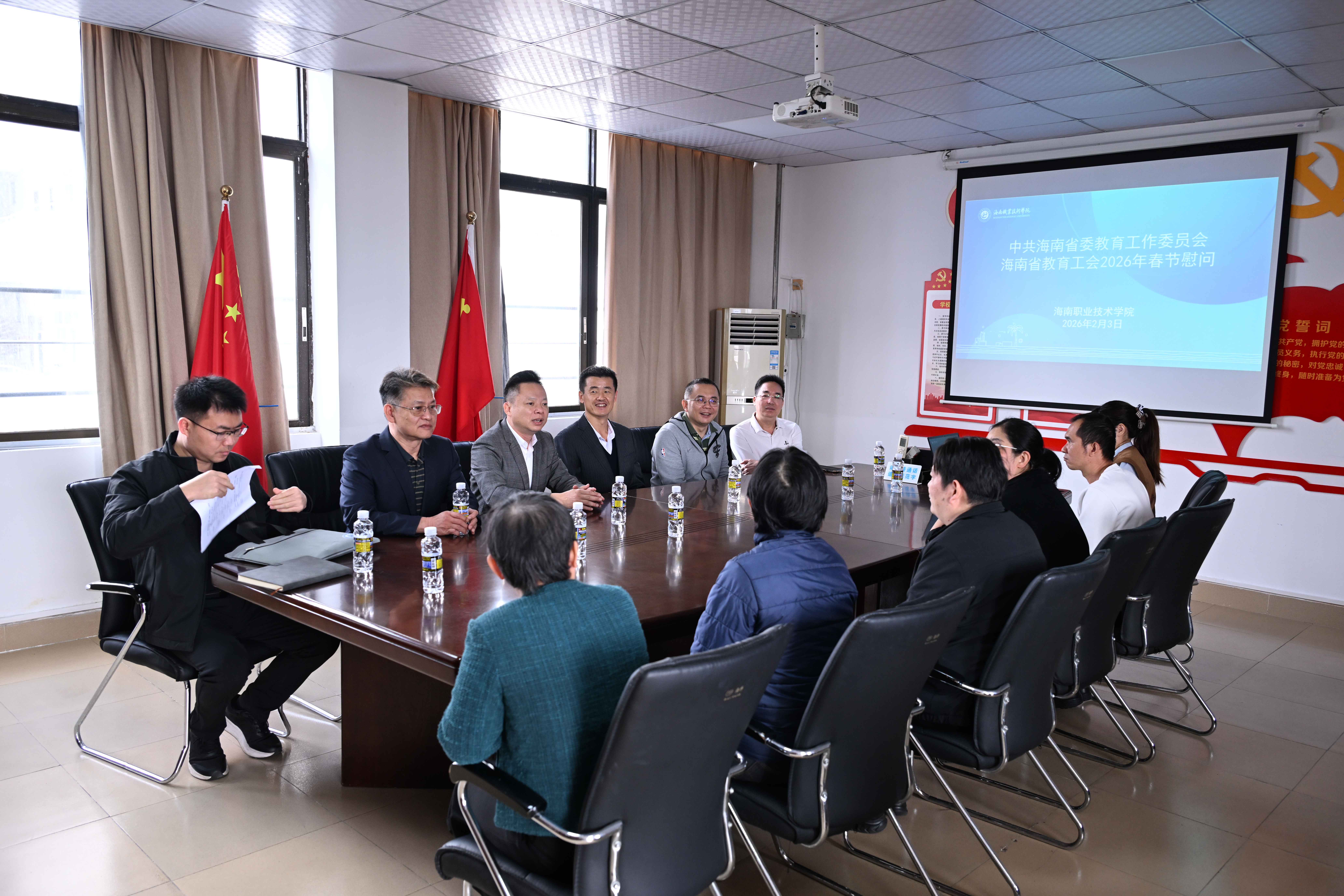 会上,孟梓岩代表省委教育工委、教育工会为开元官网师生送上了新春祝福,强调了省委教育工委和省教育工会对广大教职员工的深切关怀,感谢他们为教育事业做出的贡献,并对学校一年来取得的成绩表示肯定。同时希望大家今后再接再厉助力学校新发展,共享机遇助力海南新发展。周炳才代表学校党委、全体教职工对省委教育工委、教育工会领导的关怀慰问表示衷心感谢。新的一年,学校将一如既往推进各项工作落实落地,推动学校各项事业高质量发展。